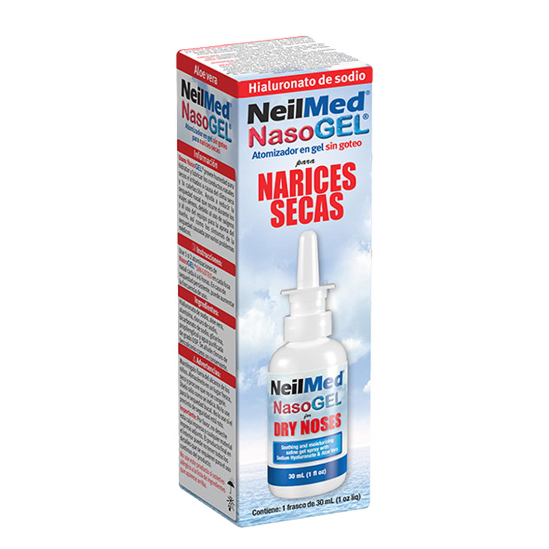 Nasogel es un dispositivo médico el cual viene en presentación gel spray, provee humectación para lubricar e hidratar la mucosa nasal seca e irritada, debido a múltiples factores como contaminación, frio, vivir a gran altitud, clima seco o uso de aire acondicionado. pacientes con uso crónico de oxigeno o CPAP